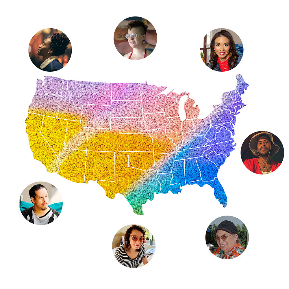 Image: A map of the United States overlaid with Ephemeral Vision by Peter Perrino, surrounded by artist headshots.
