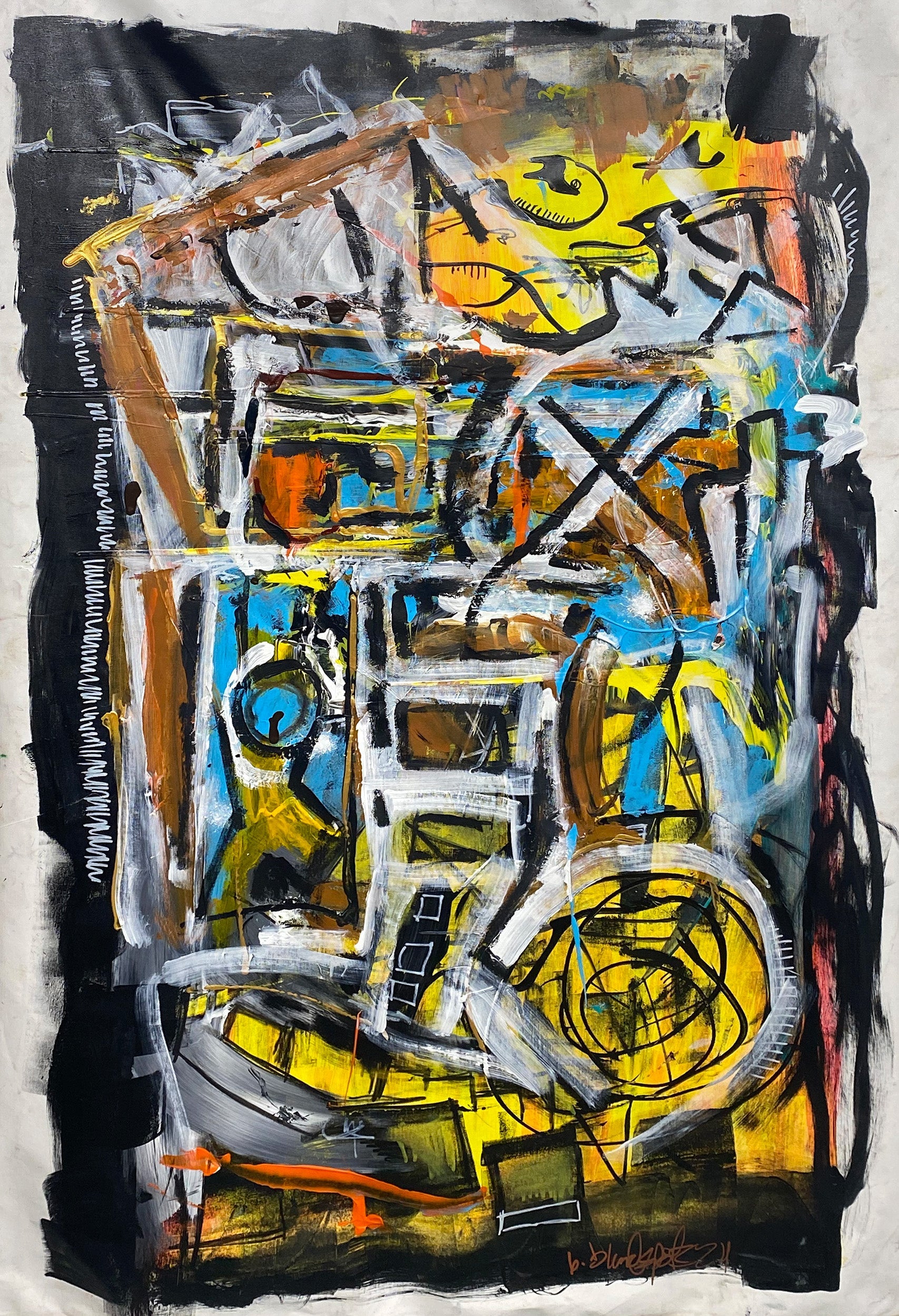 Benny’s paintings are raw, striking, and engaging to the viewer. He puts forth an abstract and expressionist style while playing with surrealism. Benny refers to some of his paintings as “dreamscapes”, as they come from intuitive movements as opposed to a preconceived vision of what the painting should be. He describes this as a process of letting go, where he lets his emotions lead the beginning of the painting and until he sees a larger and more holistic image pleading to come out. From that point, he works to allow that image to emerge.