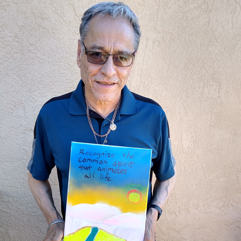 David (he/him/his) was born and raised in Santa Fe, New Mexico. His connection with the beauty of the landscape deeply affects his art. Painting and creativity have always been a part of his life and has been making art since high school. David continues to develop his talents as part of a community art program at The Santa Fe Club House, which offers outpatient treatment programs, community, and work opportunities for adults with mental illness.