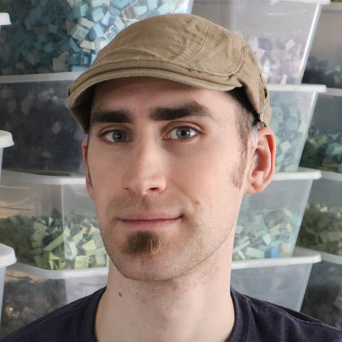 Erik taught high school art classes for a few years, but continued to pursue his computer key art on the side. He started out using only the natural color keycaps, but he worked to develop a successful dyeing recipe over the next couple years. Once this dying technique was perfected and his pixelated image style emerged, his business began to blossom. In 2017, he took the leap to become a full-time artist, marrying his interests of creation and recycling.