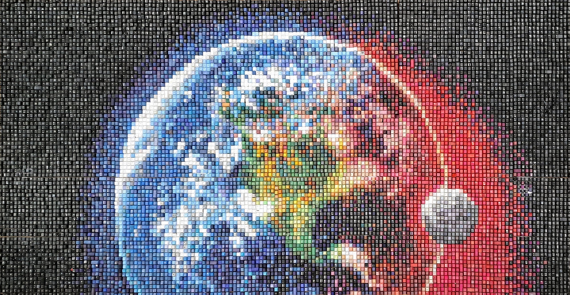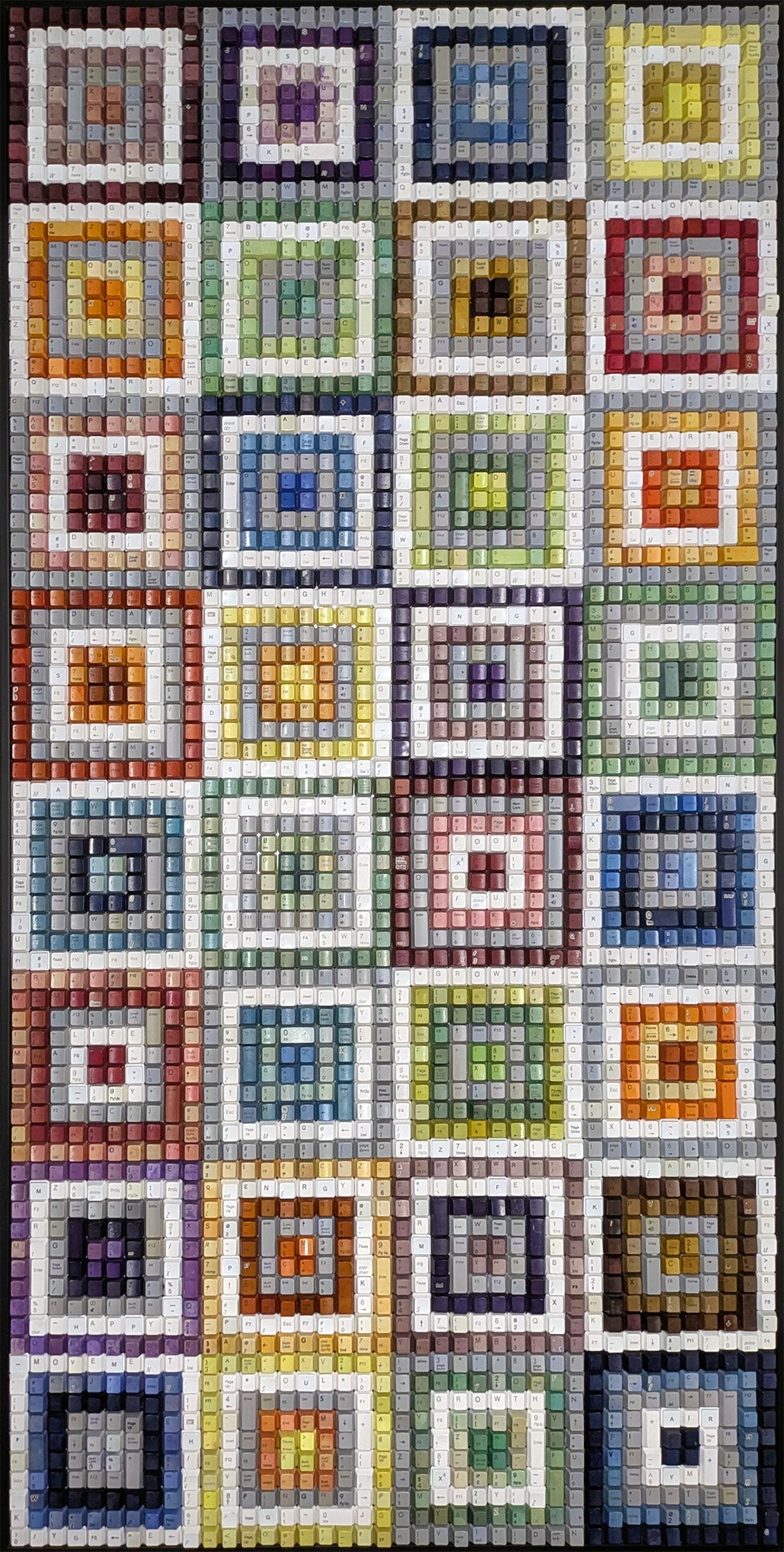 Erik has since pivoted to recreating landscapes and master artworks as well as creating abstracts that look like colorful, pixelated computer pixels. Erik explains, “Each key has its own personality expressed by shape, color, depth, etc. Placing these keys together gives a pixelated beauty from the front and a mesmerizing texture up close and on the side.”