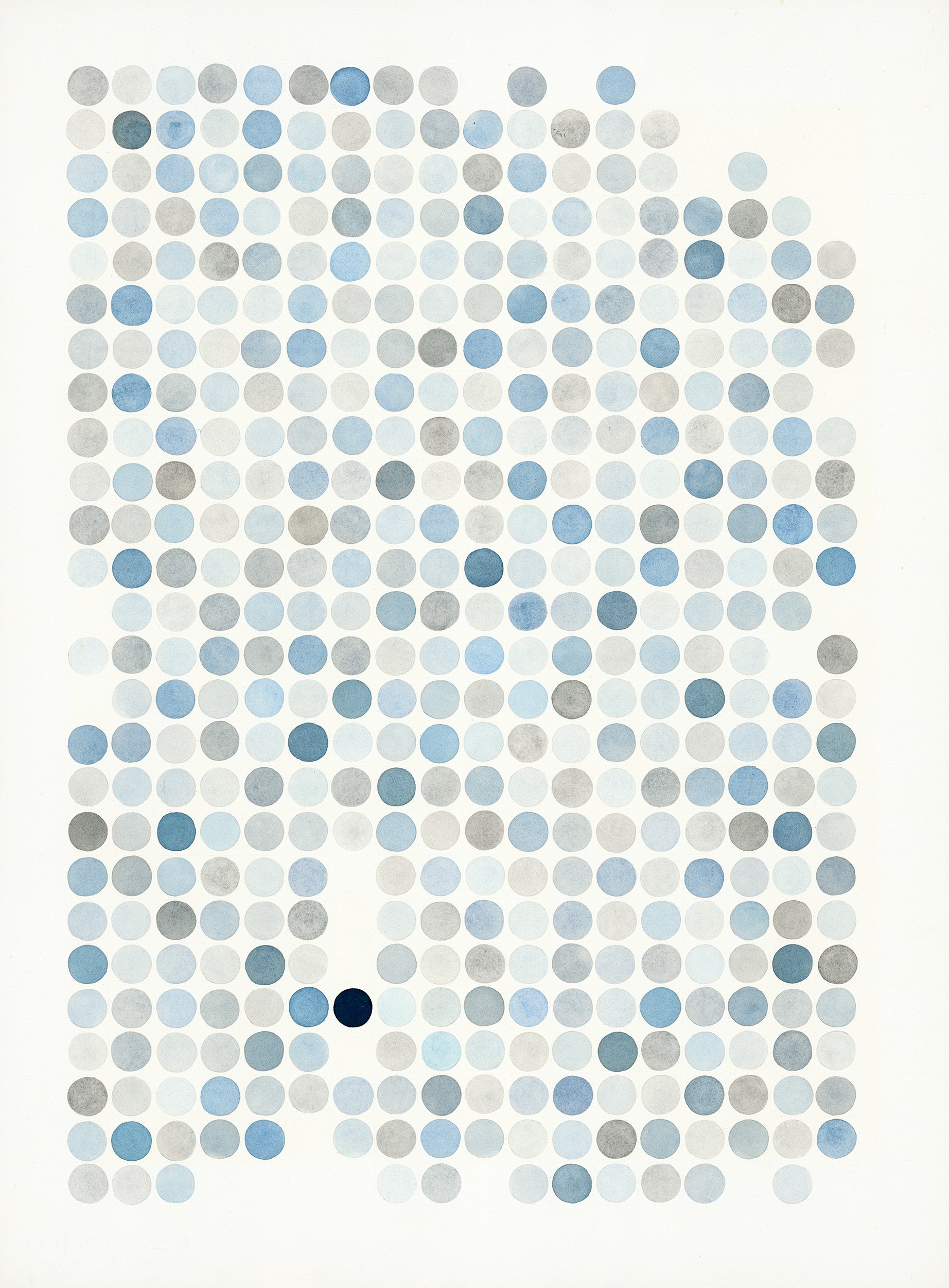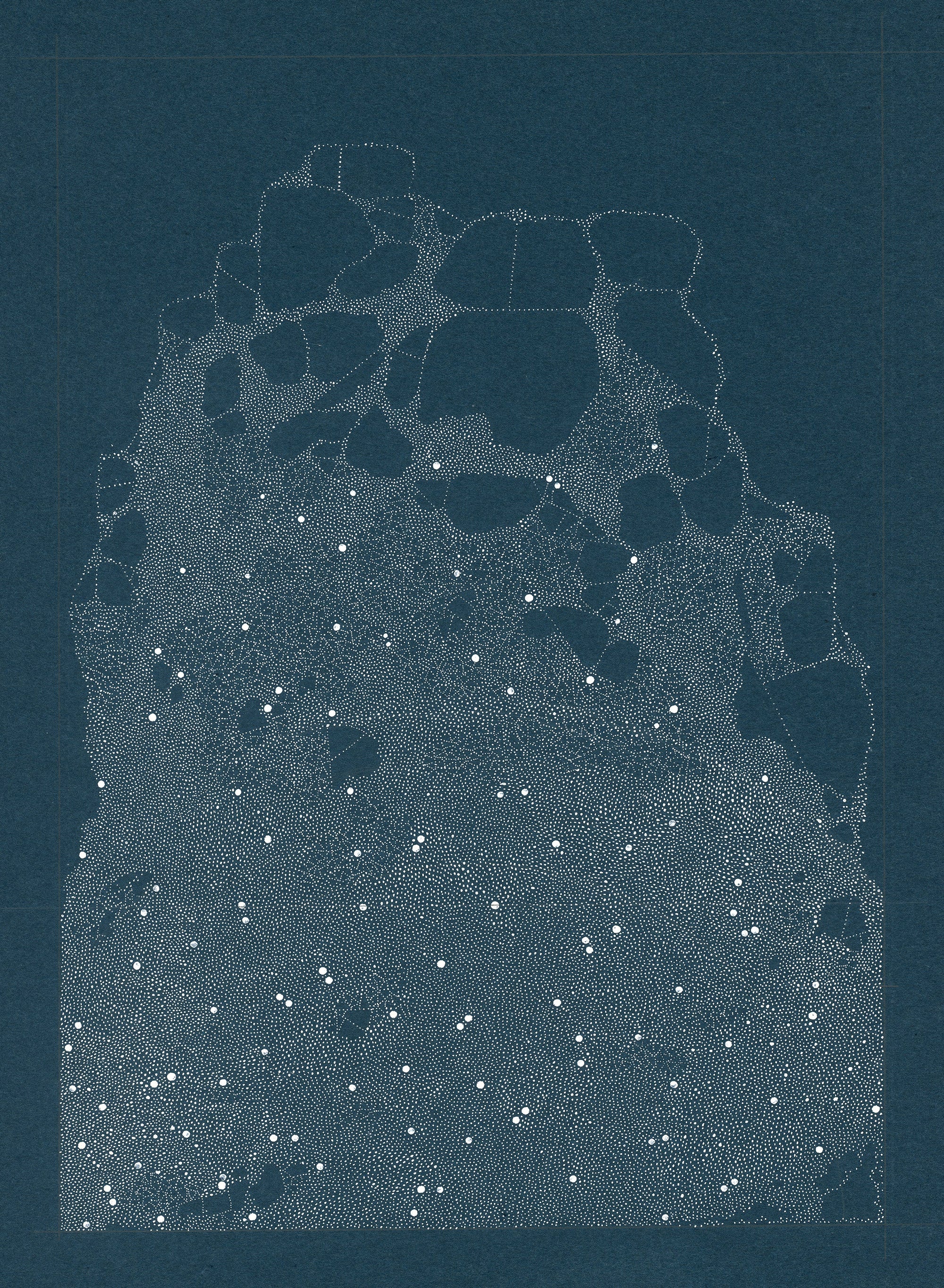 Kate is inspired to take complex visual data and reduce it to its more basic elements. She describes her inspiration as coming from everywhere and nowhere simultaneously. Ideas for new work may arise from cracks on sidewalks, screenshots taken from nature documentaries, or the new collections of fellow artists. Still, Kate finds a way to focus in, illuminate the subject, and transform it to fit her modus operandi.