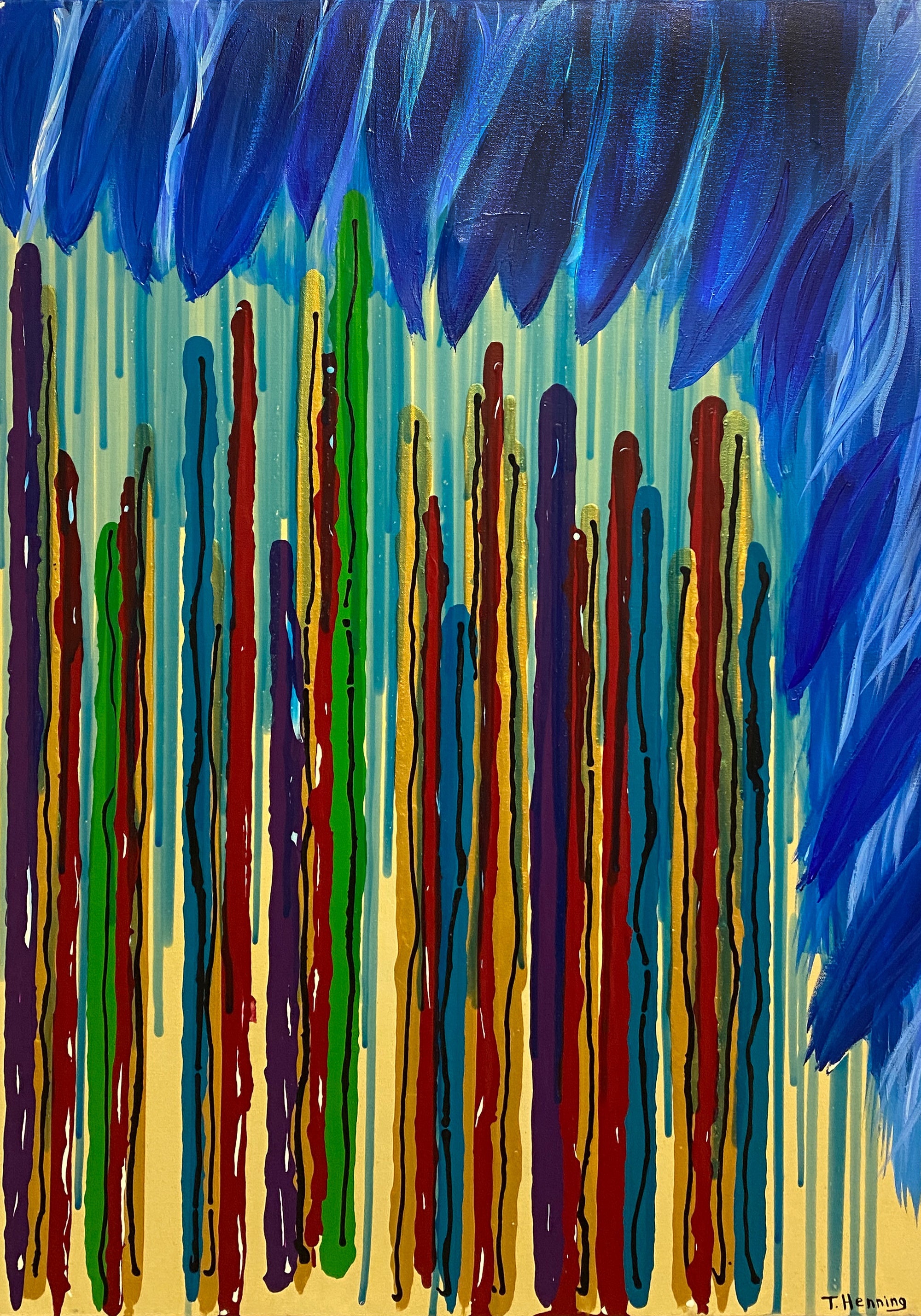 Tim Henning considers painting his “best form of expression.” Visual experiences such as nature, the streets, or television inspire his use of color and form. What I like the most is to watch people’s faces as they stand in front of a piece of my work for the first time, I love to watch their expressions as they consider my work.