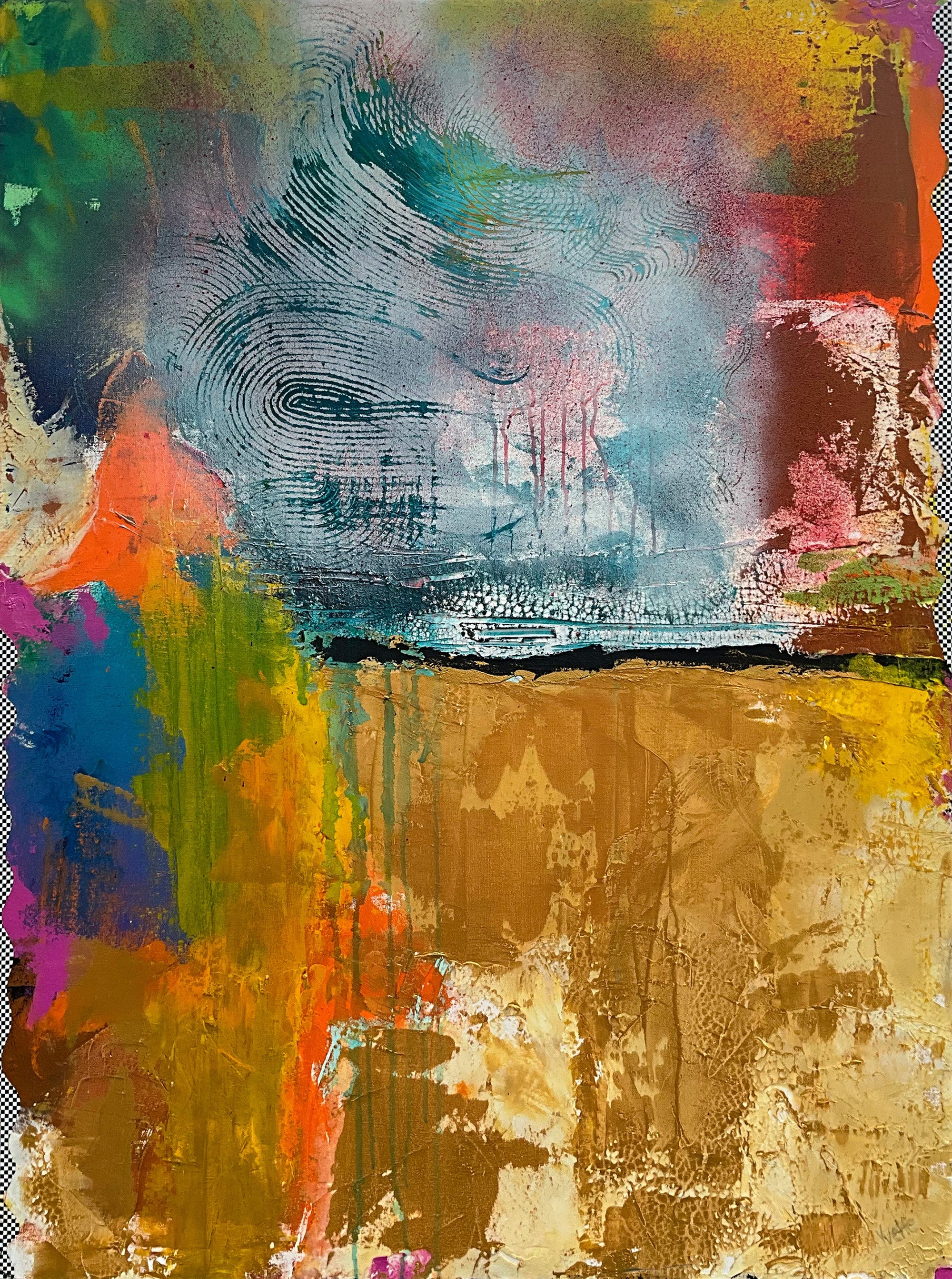 She has not received any formal training, rather, learning from experience and videos she watches online. Her style is an intuitive one, the inspiration for a piece can come from anywhere. Yvette’s paintings always begin with music, from that point she incorporates her mood, dreams, recent experiences, and most importantly the support and inspiration she receives from her family into each painting.
