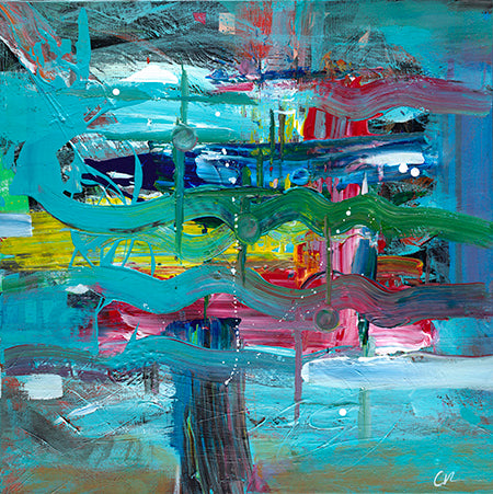 Chris is now a tech writer by day and in his free time, he pursues his creativity. His approach starts with a blank canvas, paint and paint tools (brushes, scrapers, palette knives, spatulas, and basically any object that he find that helps him create). He usually pours paint on to the canvas and then starts painting as inspiration moves him. Being a musician (singer/guitarist) influences Chris’ art as he sometimes paints guitars that contain elements of abstraction. Chris has also studied Reiki and Tai Chi, so the concept of movement and energy flow from those practices often come into play. Creativity defines his family as well, as his wife and children also share in his love for music, the spoken word, and general expression.