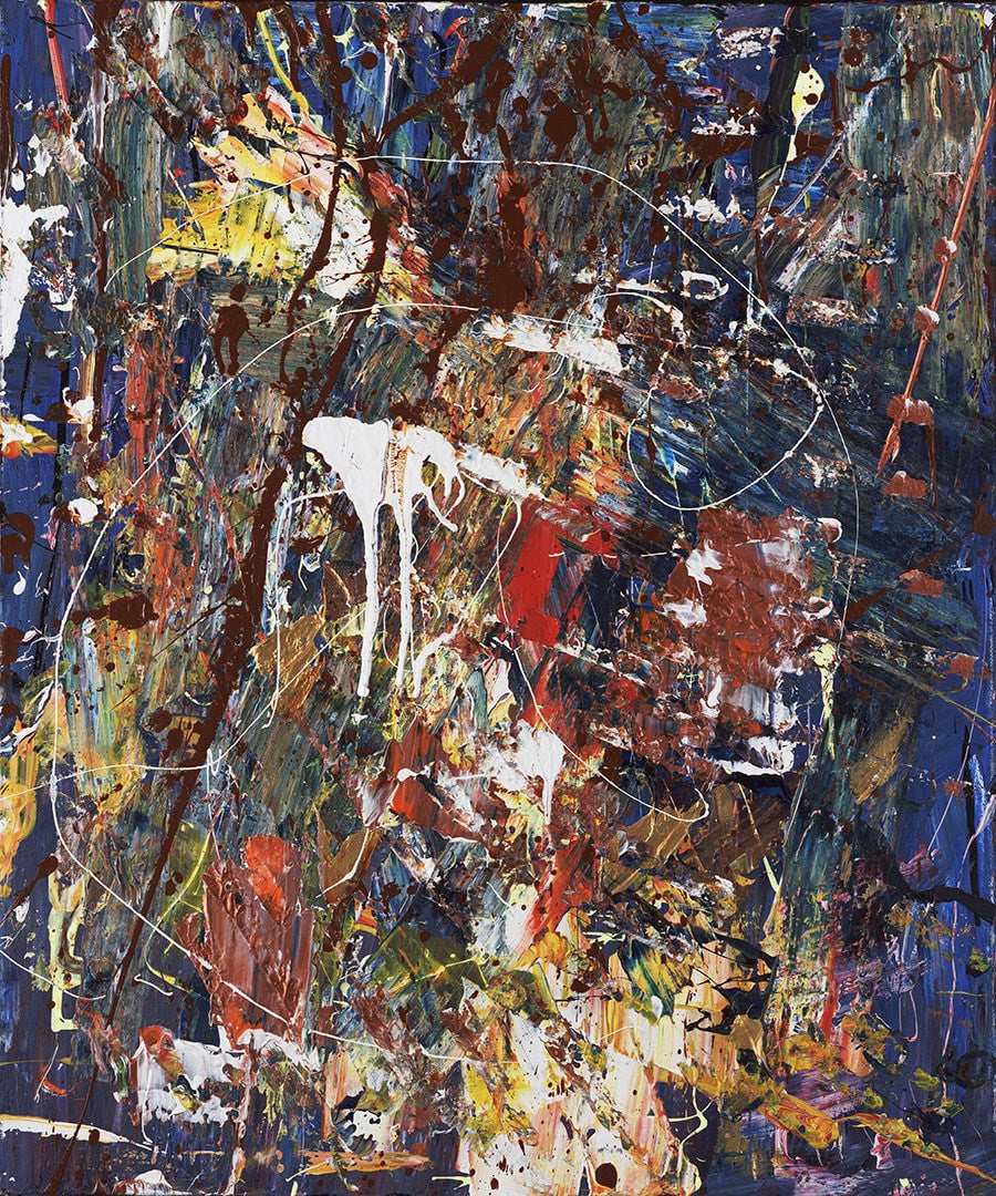 In her 20s, Jordyn picked up and moved to San Francisco during a period marked by depression. She began to paint, picking up materials and lost items at Goodwill to incorporate. From her early days when she "just went for it," she has grown more comfortable in her intuition. "It's all intuitive," she says. Whether she's using palette knives and brushes or cups, she loves color and the abstract particularly in the free flow of acrylic fluid painting.