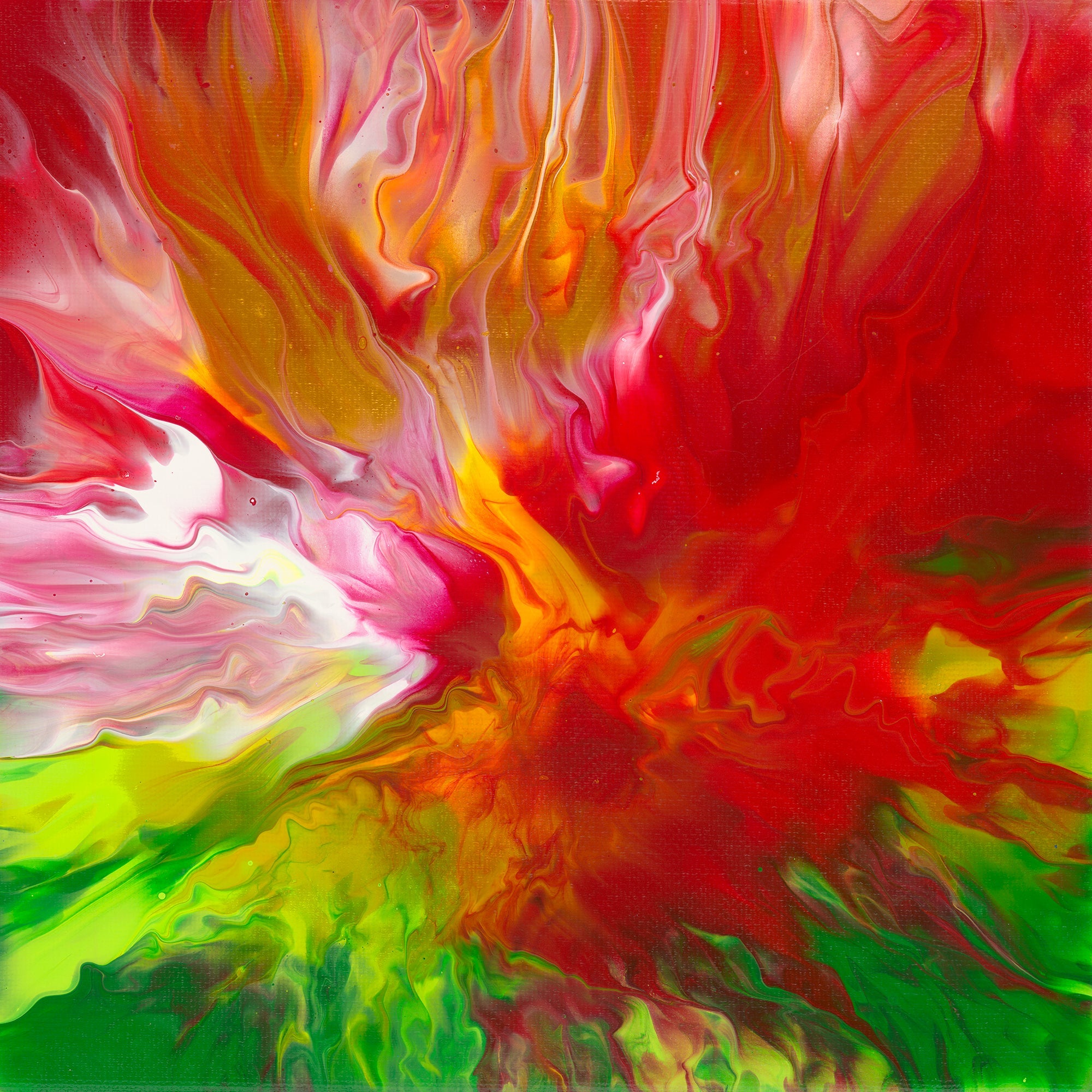 Working intuitively and responding to colour, texture, and the painted surface, Eddie recently discovered ‘fluid art’, a practice which allows him to indulge in his love of vibrant colour. The paints are poured on canvas, flowing and blending with different techniques. “I get ideas from everyday experiences. Then I think of what colours I am feeling that day. I imagine where I would like the colours on the canvas. I pour the paints out and then I just trust my intuition when I blow out the paints with my hairdryer. If I don't like the outcome, I add more paints and blow them again until I feel that the painting is done.” The joyful flow of colours tell their own story to each person who views them.
