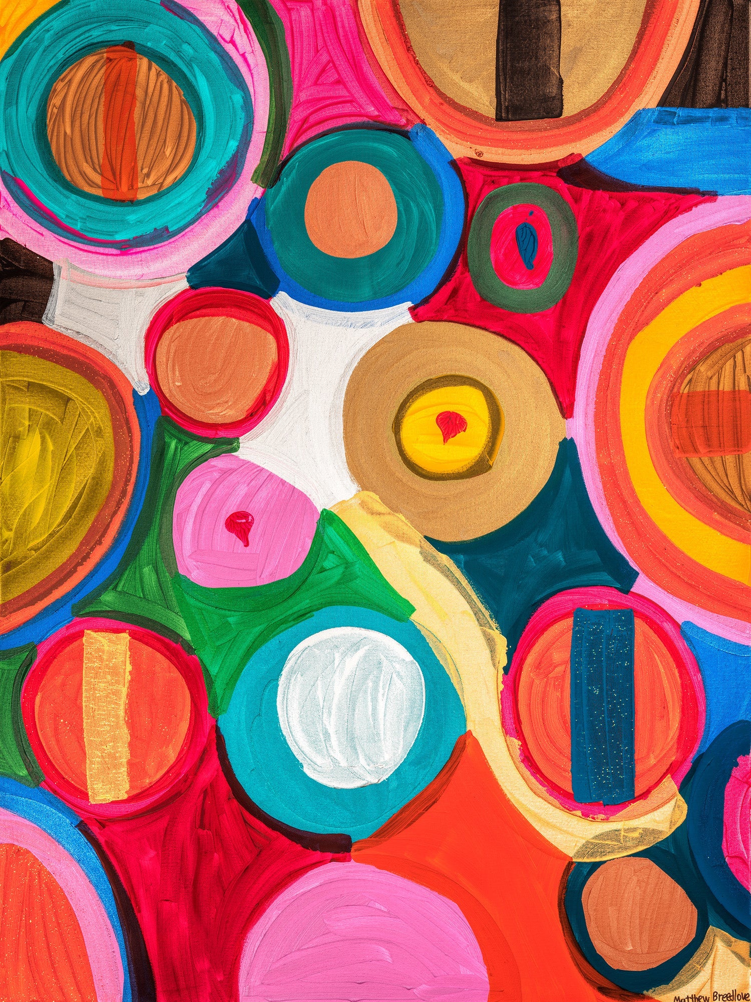 Art quickly became a powerful tool for Matthew. As he grew up, he continued to color, paint, make his own crayons and explore artistic activities that helped him thrive. His signature style emerged quickly as well, as he continually was drawn towards bright colors and geometric shapes. Matthew’s process is very intuitive and introspective, so the intricacies of each piece depend on his mood and emotions.