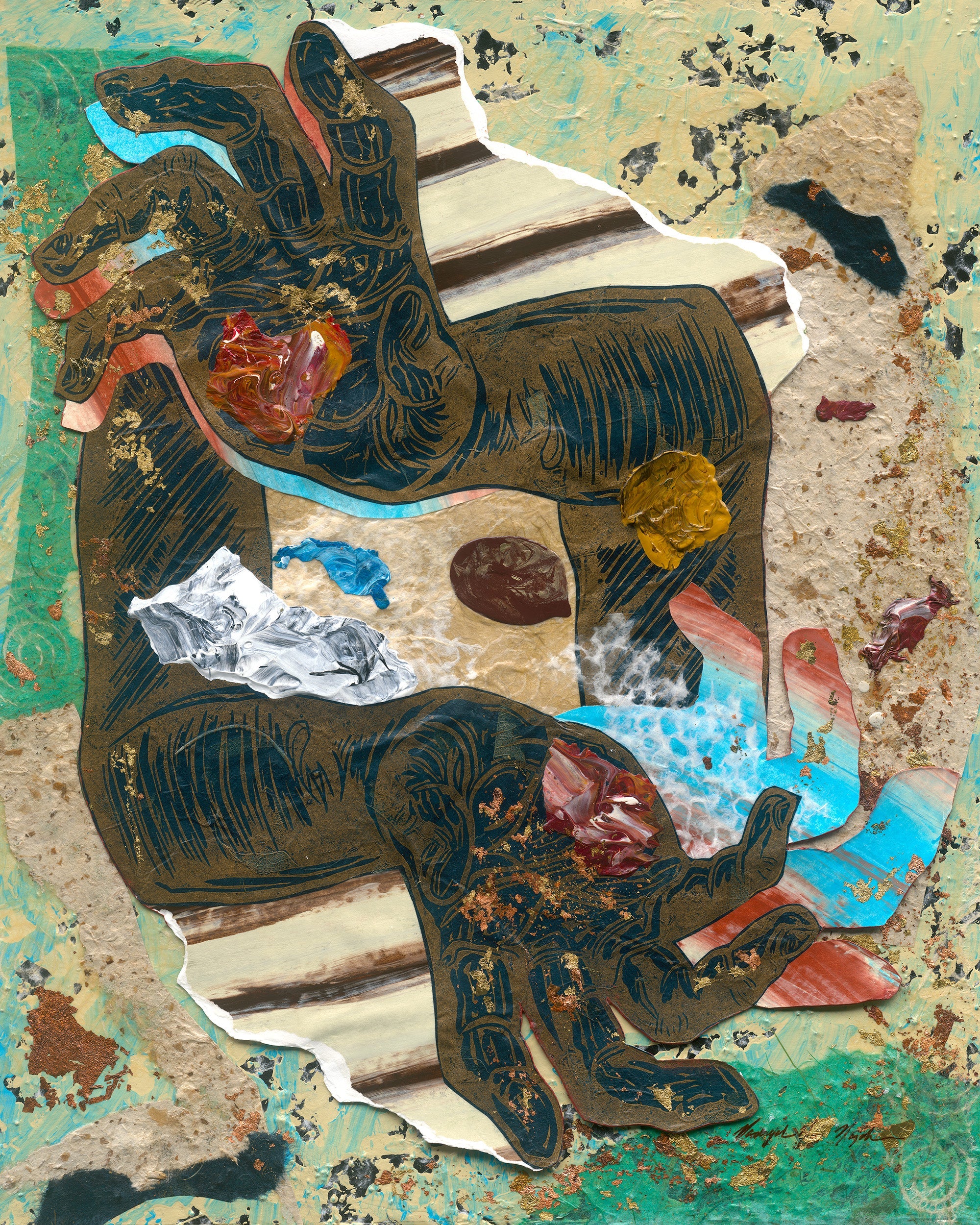 "This work is in honor of artists as alchemist everywhere, and how we take related and unrelated pieces and meld them together like magic."