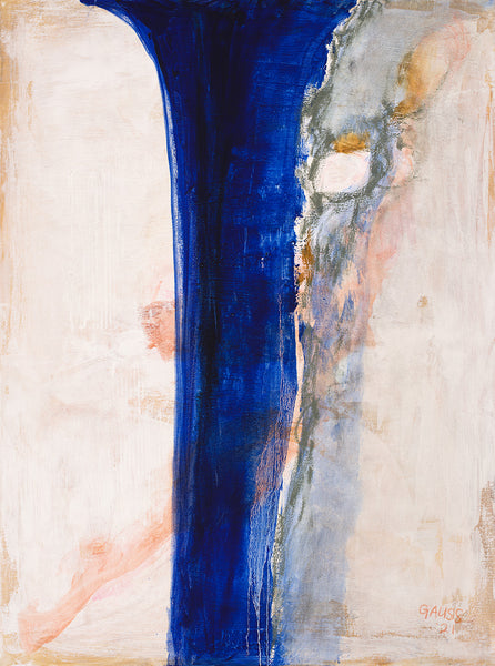" I remember learning the story about the pigment ulramarine when I was a little girl; how the gemstones used to create this deep blue were of such high value that it was reserved for only the most important subjects. Ever since that time I felt a strong desire both to wear the stone lapis lazuli; and to one day mix my own ultramarine paint. This triptych is the result of my first, very blissful experience mixing my own ultramarine paint from dry pigment. Though thanks to modern science, no precious lapis lazuli were harmed in their creation; the process was immensely satisfying, and the resulting paintings bring me endless joy."