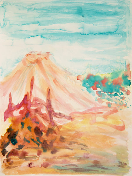 "This piece shows an imaginary scene of firelight casting dancing shadows and people dancing to bless their new home. This painting was inspired by [fellow ArtLifting artist] Katie Hickey-Schultz moving to New Mexico."