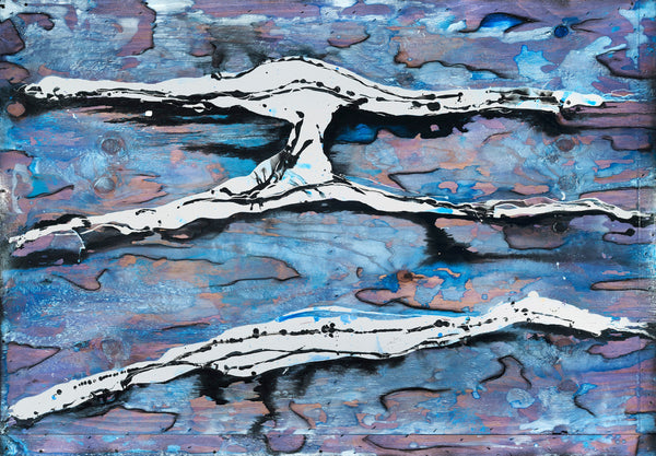 "Wood panel showing the beauty of of natural wood texture with several layers of clear coats and water color paints with oil paints made from a recycled shipping crate."