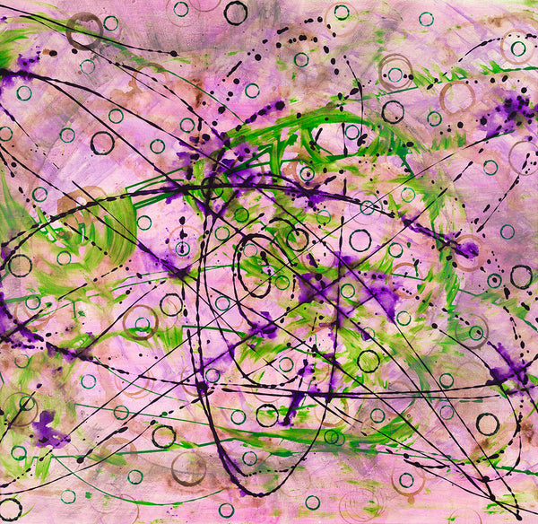 "I began to make coffee rings all over the canvas with different strengths of coffee. I added color on top of the coffee rings to make it pop!"