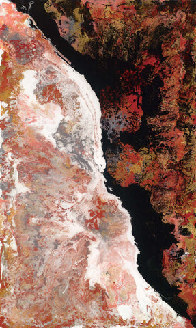 Inspired by the historic uses of marble & bronze within ancient societies, De Marbre Bronze is my artistic interpretation of the duo's elegance, durability & visually bewitching qualities. Most prominently associated with strength, perseverance, and solidity, bronze is a stunning hue that stands on its own, while marble is believed to provide clarity, self-control and, stability both physically and emotionally. Ranging from Ancient Egypt and Ancient Greece to Renaissance Europe and Asia for centuries marble has been mined and processed into everything from flawless floors to stoic statues & majestic cathedrals. Fashioned by blending and bending these and other bright & captivating colors onto a large area of emptiness & the primary focus of De Marbre Bronze is to enchant, mesmerize, and creatively capture the viewer within the artistic motions and aesthetics of the piece. Elegance lies in what is not shown.