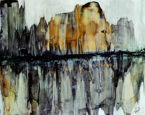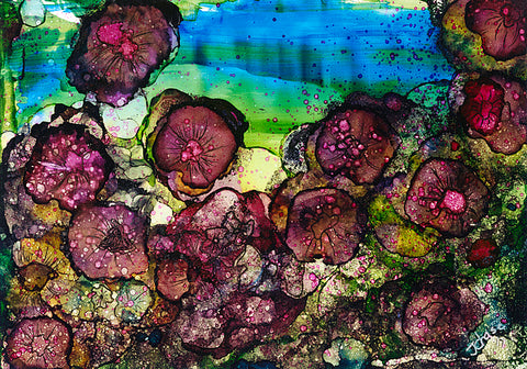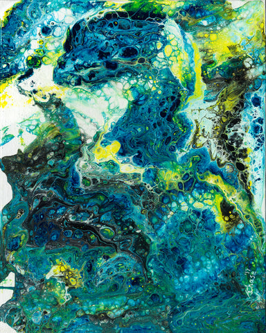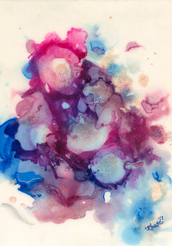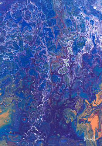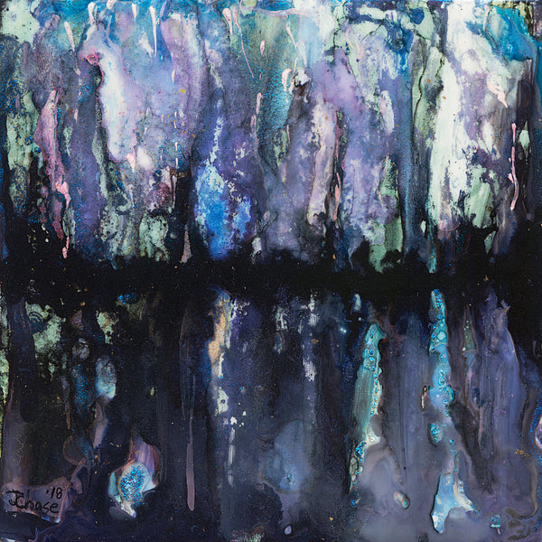 "As I was learning how to swipe with alcohol ink, I was excited by the effects of the light colors with black. This ended up giving me the vibe of running from an unknown terror with eyes wide shut."