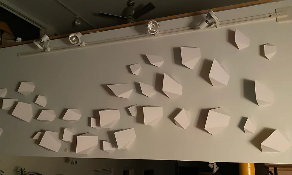 Framed paper art works are a cornerstone of Eliza's practice. A few simple paper models produced in her basement during the pandemic ignited a storm of design ideas.