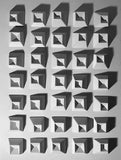 Eliza's designs find strength in their scalability and repetition. This collection of custom large-scale installations was initially conceived as paper study models. Moving from framed individual art works to larger site-specific installations was a natural evolution of Eliza's practice.