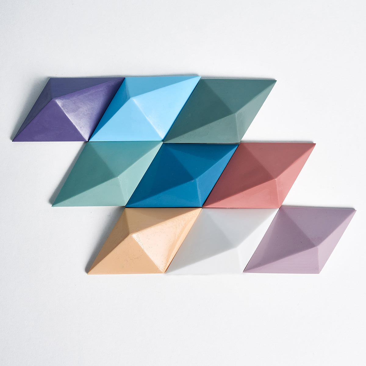 The collection features a variety of designs, some of which can be customized to fit any space. The collection was inspired by Diamond Dream, a commissioned wall sculpture that started as a folded paper.
