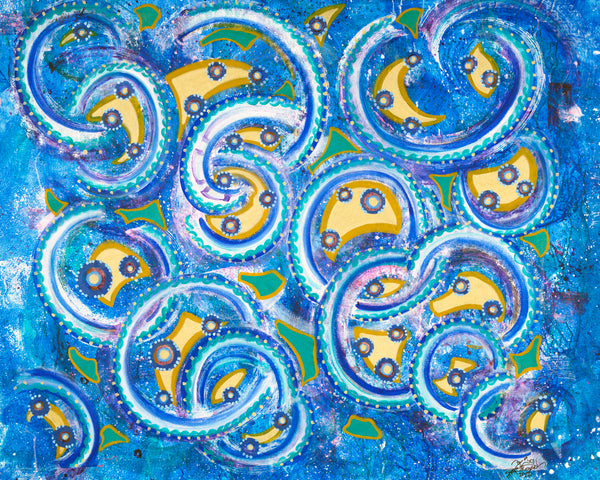 Prints are produced on demand on either mounted canvas, acrylic plexi, or giclee fine art paper in a variety of sizes here in the United States. High quality print reproductions for your home or office designed by artists living with homelessness or disabilities.