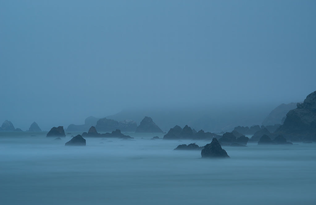 "This landscape was taken in Mendocino, California in the evening. I needed to let in as much light as possible, so with a tripod and a filter I was able to do a 30 second exposure which smoothed the ocean water, giving a meditative calm to the image."