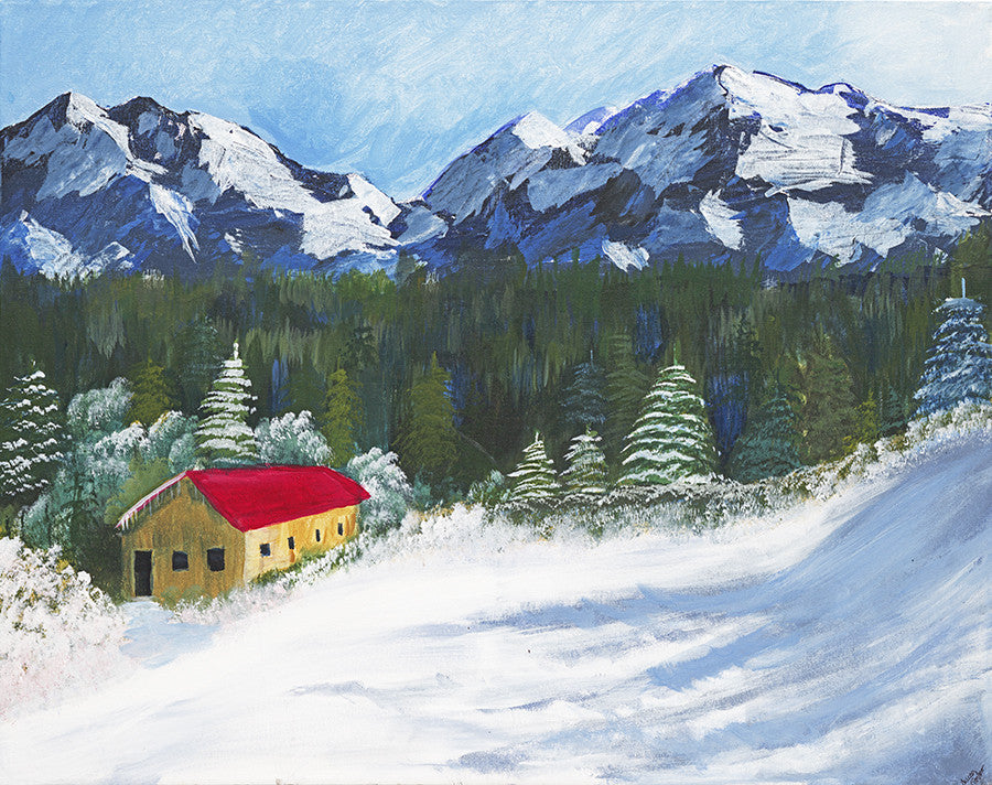 "This piece has a special place in my heart. It was my first time ever using apalette knife to do the mountains. I love watching Bob Ross paint and he has been my inspiration for my nature landscapes. This was also the biggest piece I havedone, to date."