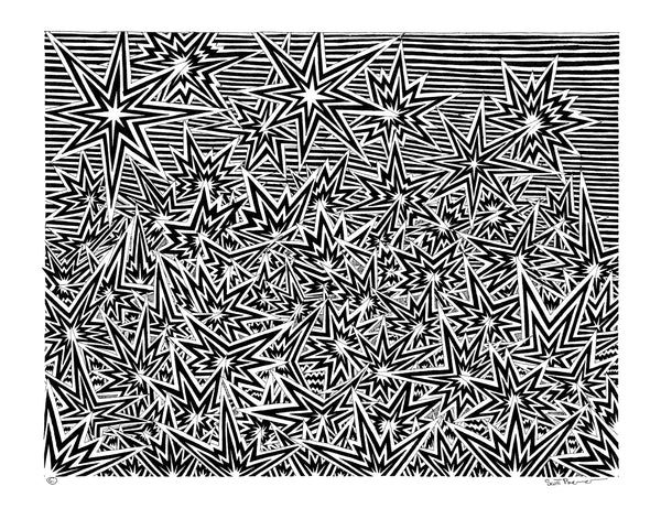 Prints are produced on demand on either acrylic plexi or giclee fine art paper in a variety of sizes here in the United States. High quality print reproductions for your home or office designed by artists living with homelessness or disabilities.